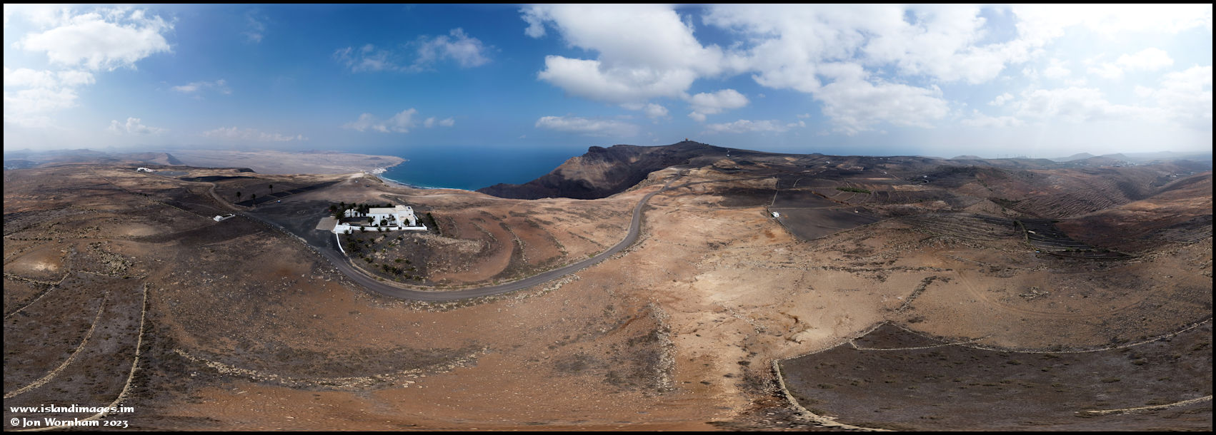 Flying back over the fields for a better view of the Ermita de las Nieves (Hermitage of the Snows), in its high and islolated position.