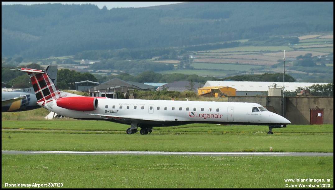 Loganair ERJ145 G-SAJF 'Clan MacDuff' taxies for departure to Liverpool