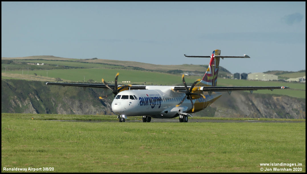 Aurigny Air Services ATR72 G-OATR lining up on runway 26