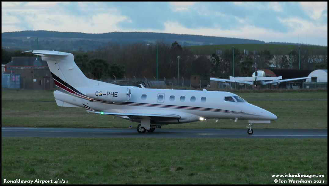 NetJets Phenom 300 CS-PHE lines up on runway 08.