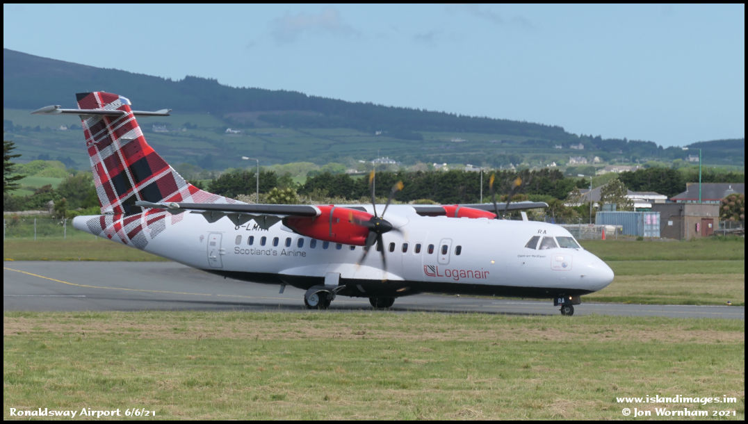 Loganair ATR42 G-LMRA lining up on runway 08 for departure to Manchester. It then did a flight to Newquay and back before returning to Ronaldsway in the afternoon.