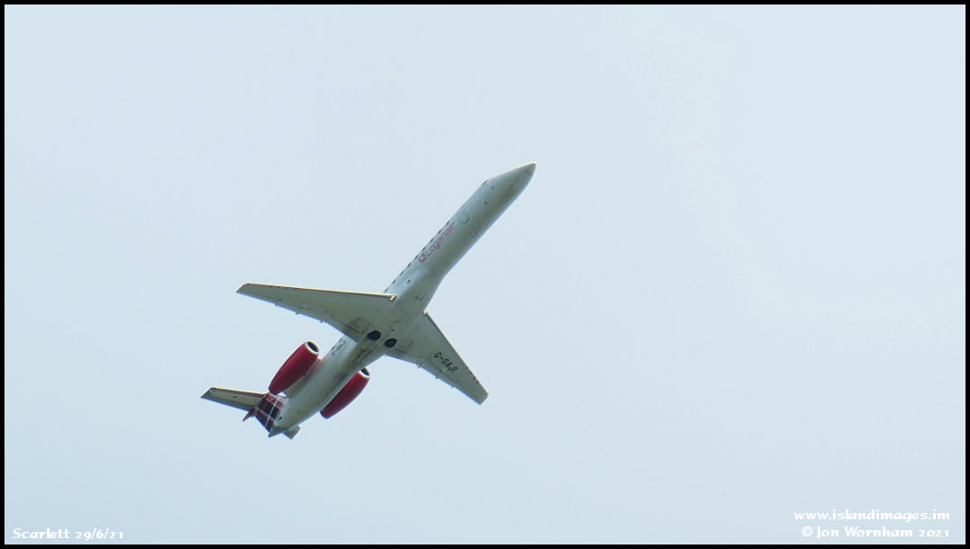 Later in the afternoon G-SAJI is captured climbing out of Ronaldsway operating a Loganair service to Liverpool and return.