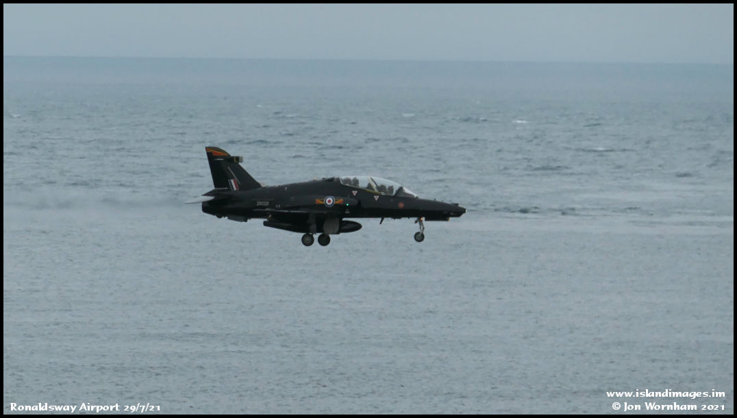 RAF Hawk T2 ZK021 on final for runway 26 after a practice ILS approach.