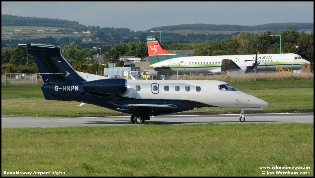 Embraer Phenom 300 G-HNPN about to roll on runway 08 at Ronaldsway.