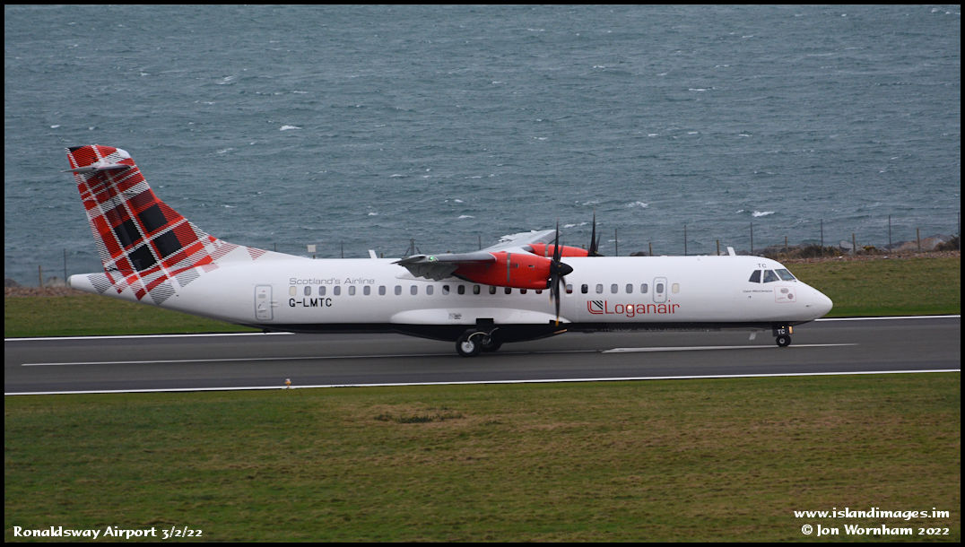 Loganair ATR72 G-LMTC lined up on runway 26 and about to roll. Thsi aircraft only arrived in the fleet in January and was constructed in 2015