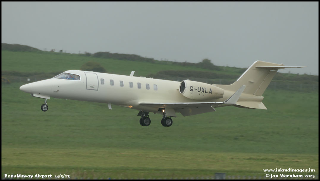 Saxon Air Learjet 40 G-UXLA about to touch down on runway 26
