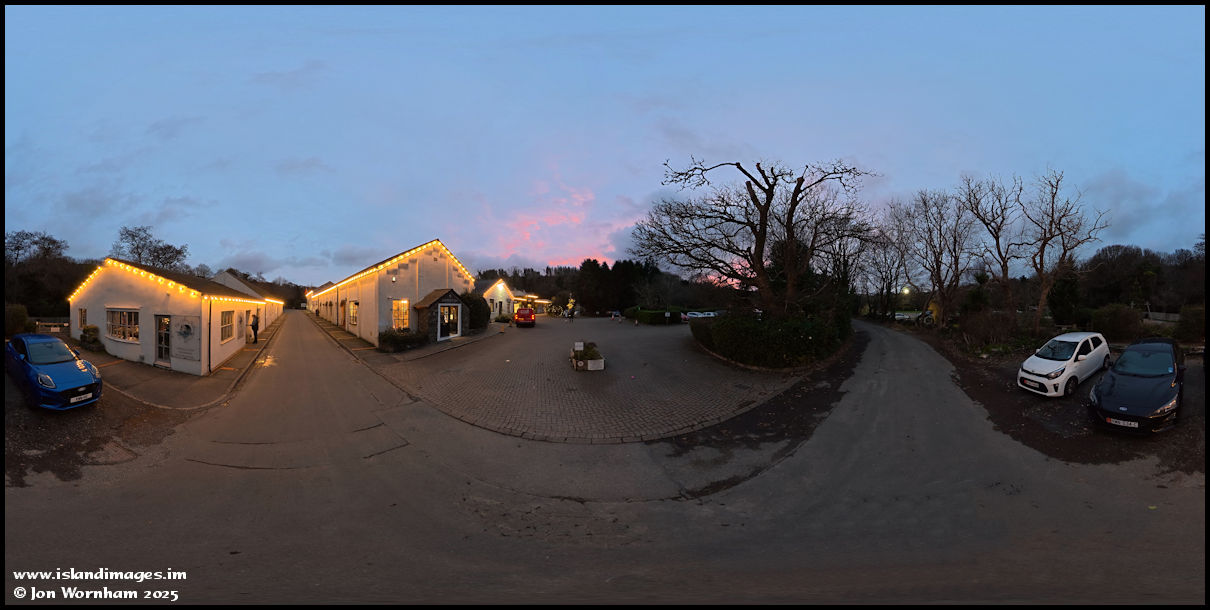 We had arrived at Tynwald Mills just in time for the skies to clear enough to give a bit of colour after sunset, so I shot this panorama quickly outside Element Isle.