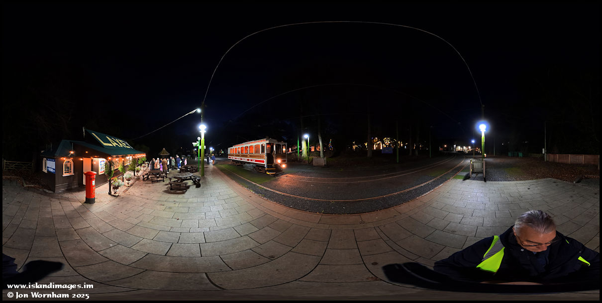 A night time 360 degree panorama at Laxey Station featuring Car No 22.