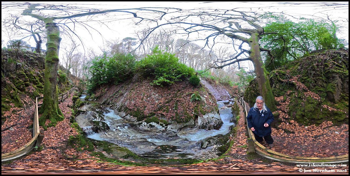 It's very difficult to capture this dramatic section of the river in a single shot, but the 360 camera on a long 'selfie stick' enabled me to get a shot out over the fence.