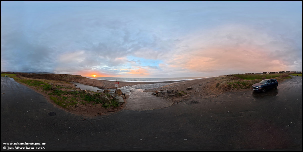 360 degree panorama shot from the car park at Ballaugh Shore where the river runs across the beach and into the sea.