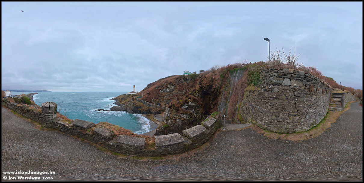A 360 degree panorama from above Port Skillion. As the image pans around you can see the steps that let up to the former funicular railway, which closed down forever in 1953.