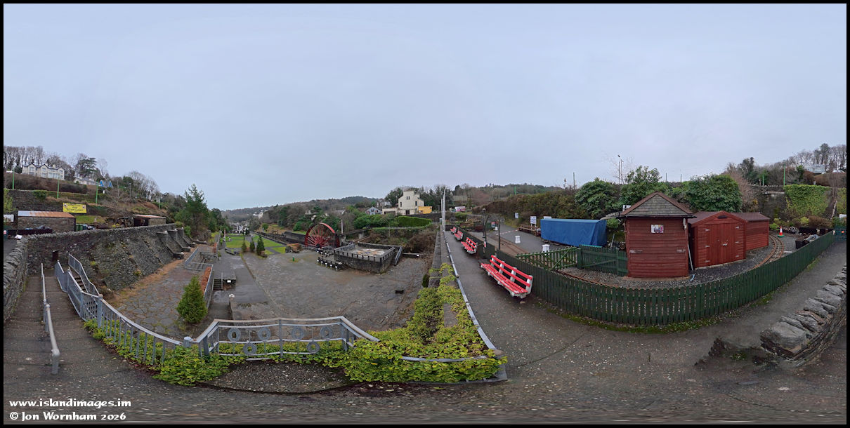 I've moved to the upper part of Laxey village now for this 360 panorama looking down to the former mines washing floors from by the Great Laxey Mines Railway, with the Snaefell Wheel taking pride of place below.