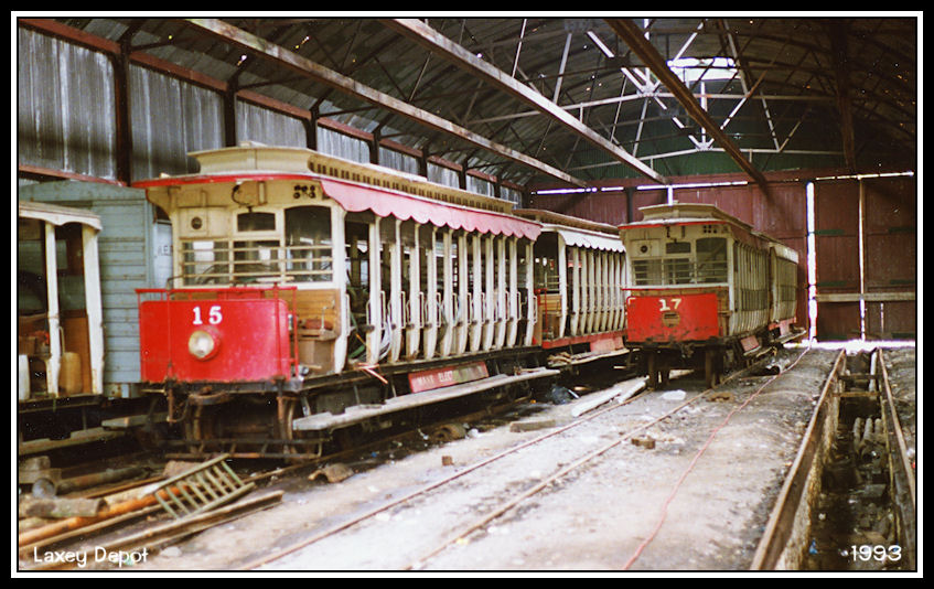 Inside the depot are Cars No 15 & 17, built in 1898 for the Ramsey extension, but now out of use