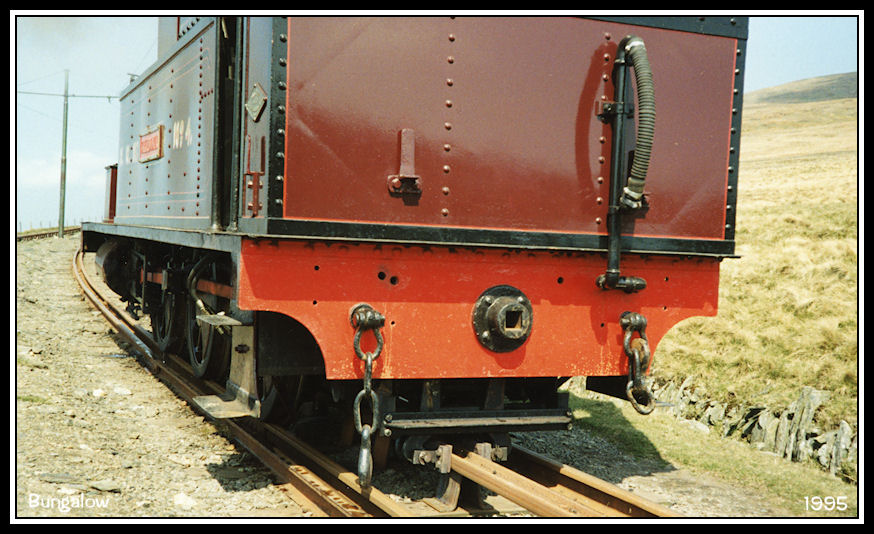 Close up showing the rear 'Fell' brake fitted to Caledonia and the dual gauge track on the SMR