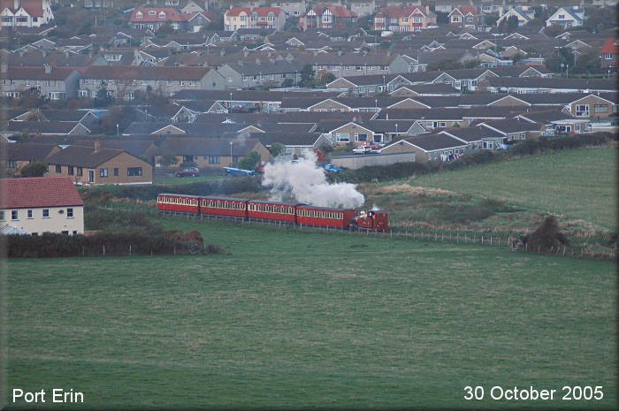 The sun has set as the last train of the day heads out of Port Erin for Douglas.