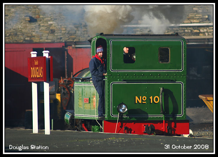 No 10 'G.H. Wood, entering the platform, note the electric headlight fitted for running after dark
