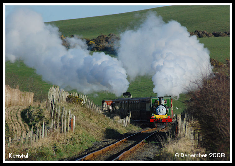The third 'Santa Special' of the day, the 12:00, steams up the bank with G.H. Wood and Loch