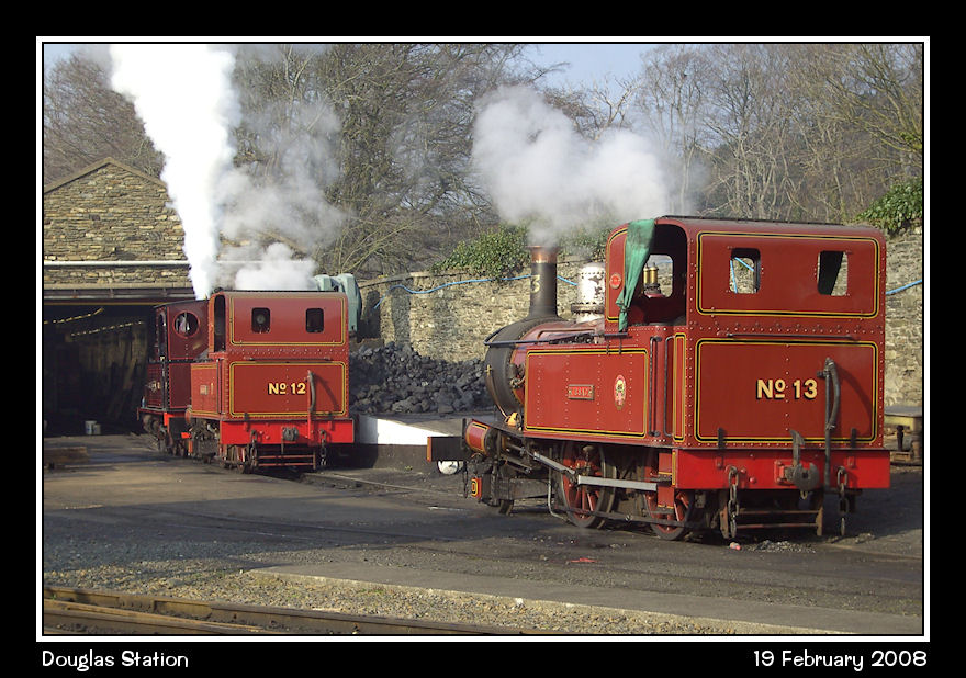 A chance visit to the station found no less than three engines in steam, No 13 Kissack, No 12 Hutchinson and MNR No 4 Caledonia