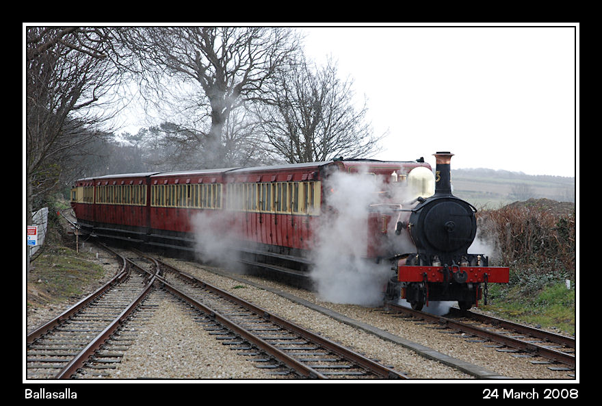The sunshine has been replaced by a wintry shower as 'Kissack' enters Ballasalla ststion
