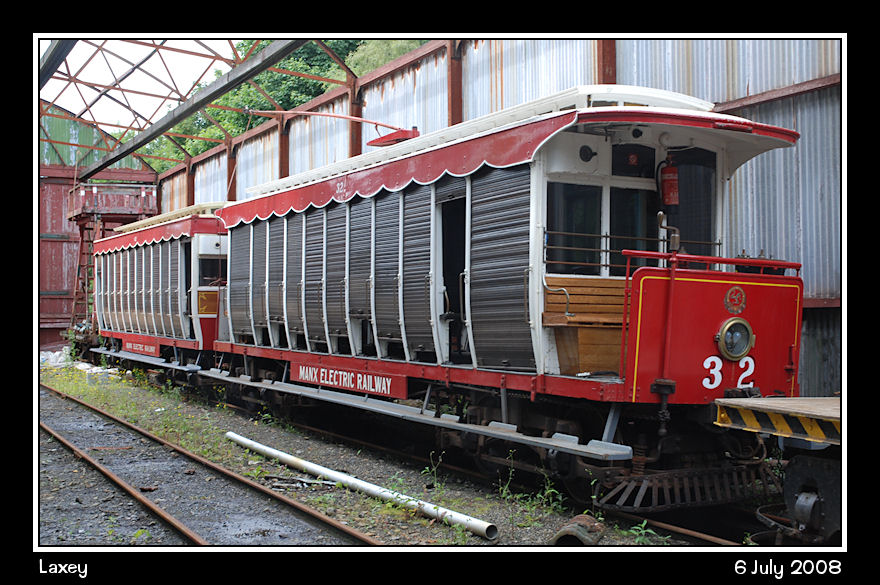 MER Car No 32 and trailer 62 lurk in the roofless depot