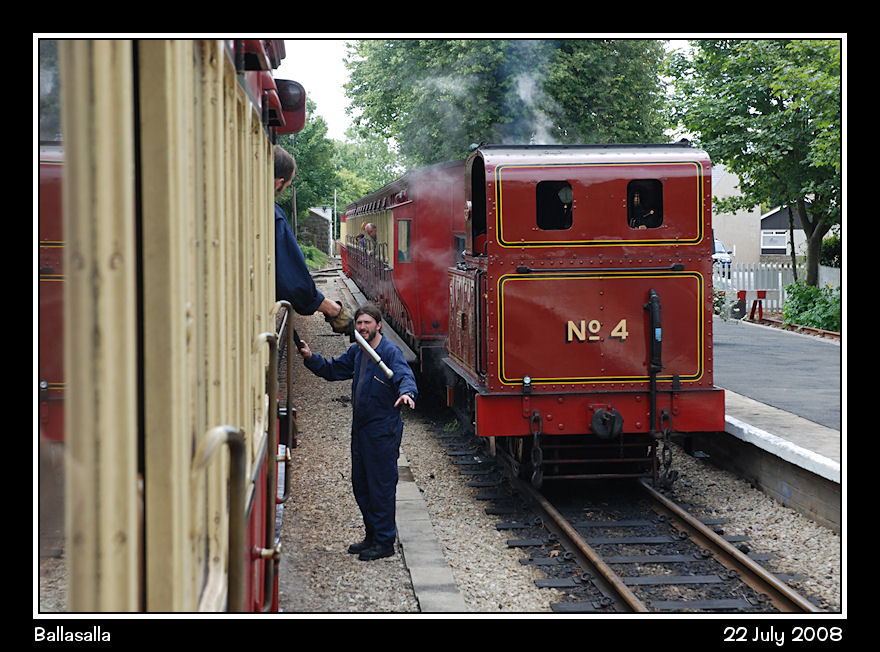 Changing single line tokens as No 4 'Loch' waits to head for Douglas