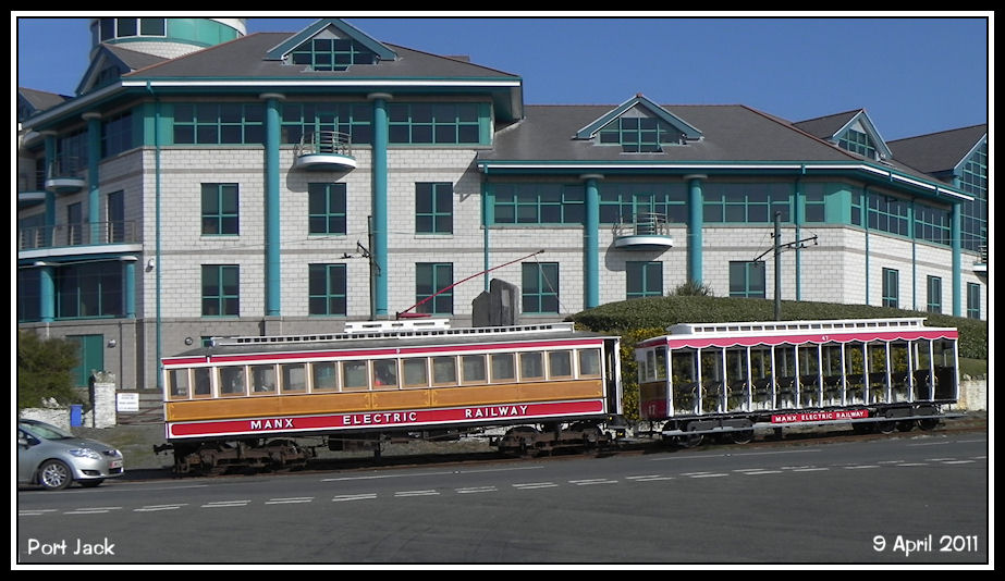 Car No 9 heads around the curve past the Royal Scandia building
