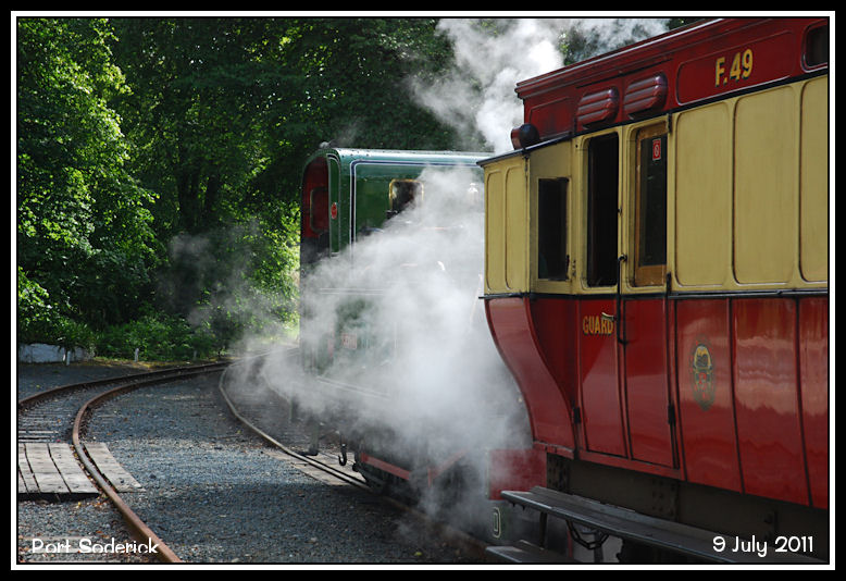 After dropping off a passenger, 'G.H. Wood' starts the train again, next stop Douglas