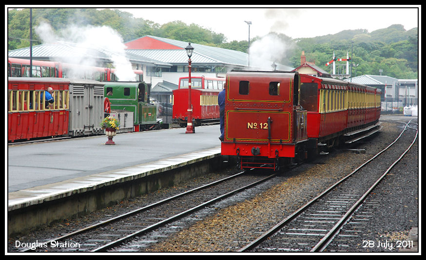 No 12 'Hutchinson' arrives with the train form Port Erin, clearing the single line to allow the special to depart