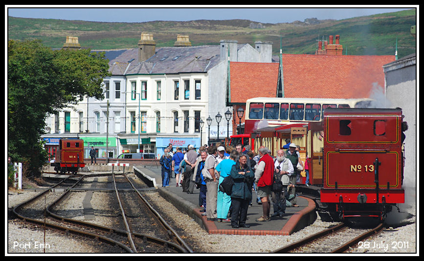 In sunny Port Erin and the 11:50 to Douglas is in the bay platform with No 13 'Kissack. No 4 'Loch' as station pilot.