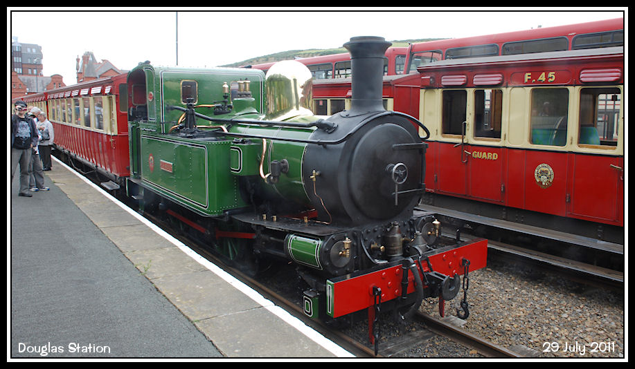 At the adjoining platform, No 10 'G.H. Wood' stands at the head of the saloon coach rake