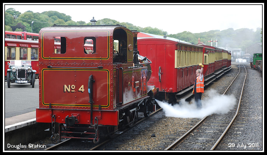 'Loch' eases onto the back of the train from the headshunt. At Port Soderick the train will divide and 'Loch' return with two coaches