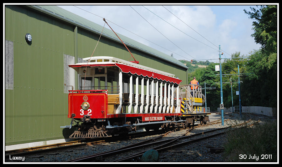MER Car No 37 propels the hydraulic tower wagon past the depot