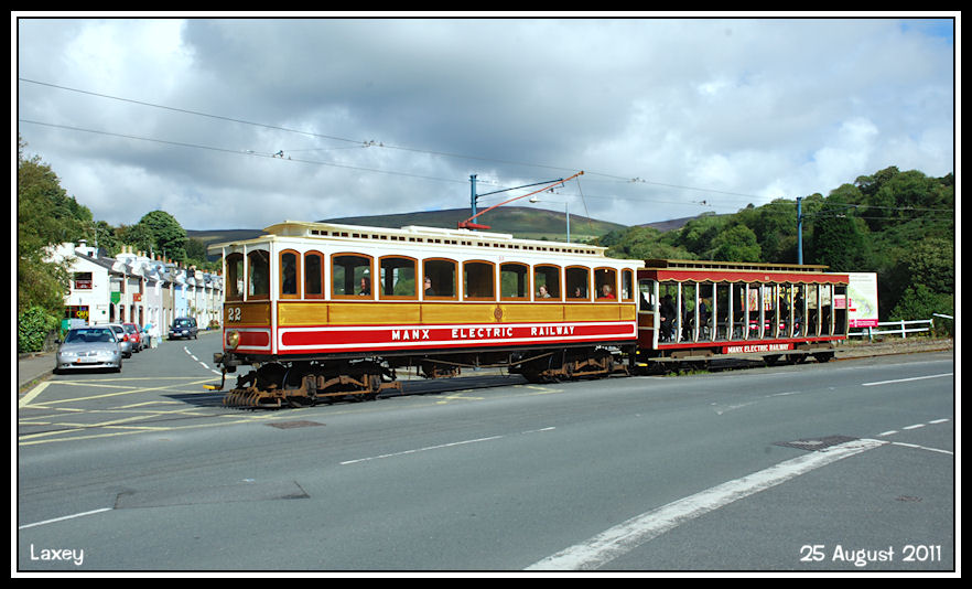 Heading into Laxey from the Ramsey direction is MER Car No 22, captured on the middle crossing