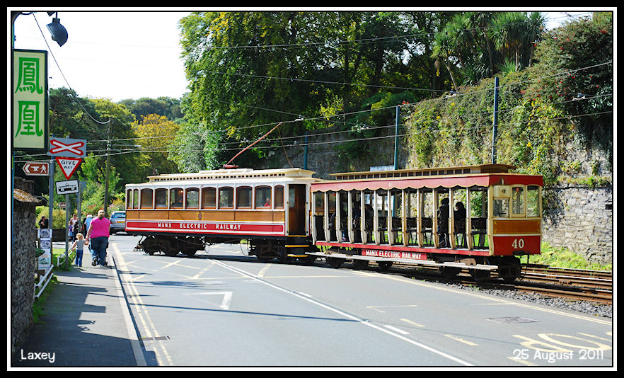 MER car No 22 with trailer 40, enter the station over the southern of the three road crossings here