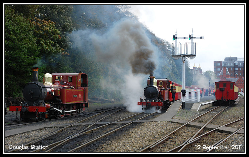 'Loch' ready to head the 08:50 CYG2 train to Castletown, with 'Kissack' on the shed road