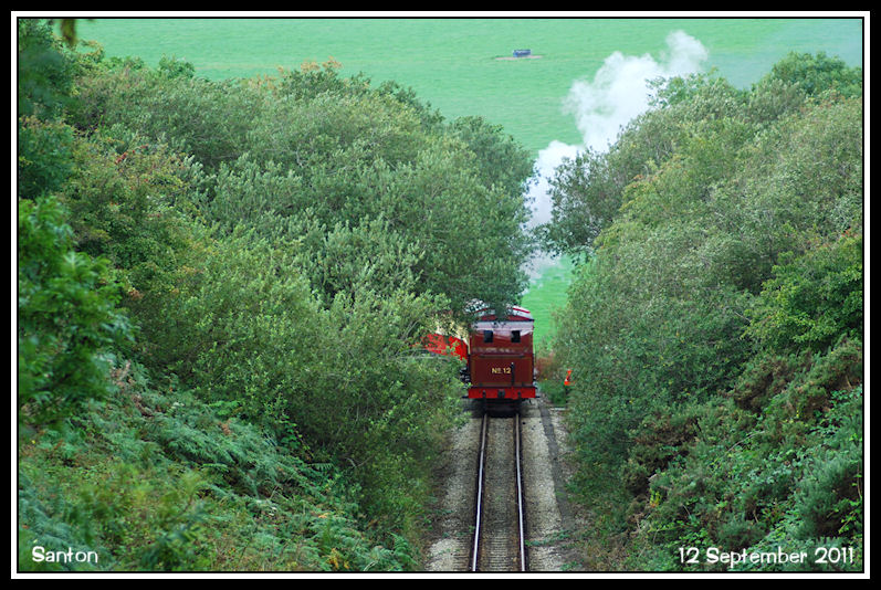 Viewed from the road bridge, the CYG3 10:07 from Castletown approaches, headed by 'Hutchinson'