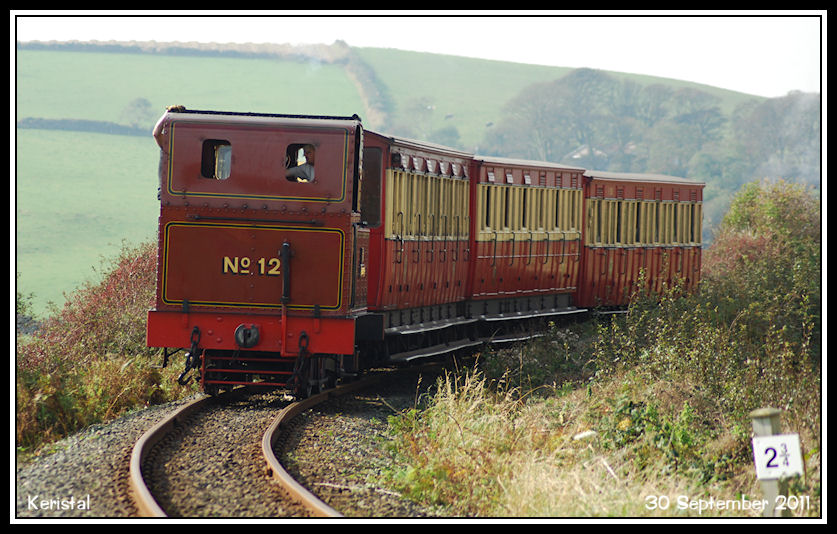 Some minutes later and No 12 'Hutchinson' appears with the Port Erin to Douglas train