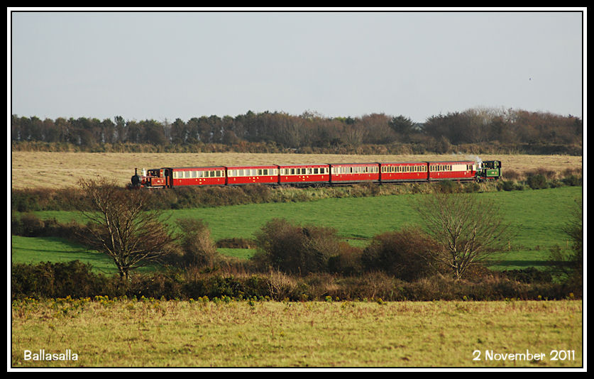 'Loch' & 'G.H. Wood' roll carefully down the bank towards the signal protecting the station