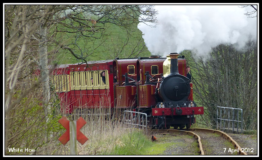 The 09:50 to Port Erin, double headed by No 4 'Loch' and No 13 'Kissack' heads towards White Hoe crossing