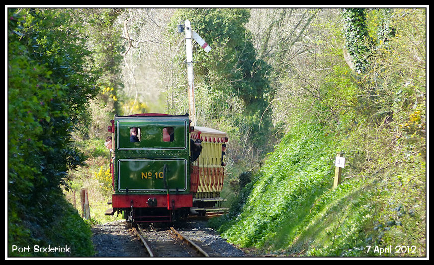 Running 30 minutes late, 'G.H. Wood' approaches from Crogga Glen with the 09:50 from Port Erin