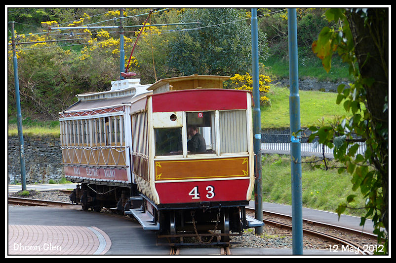 Having dropped off and picked up passengers, Car No 9 heads off towards Laxey
