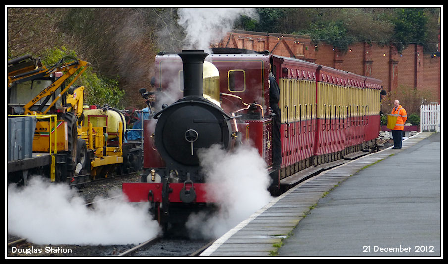 The 12:50 Douglas to Port Erin heads out behind 'Hutchinson'
