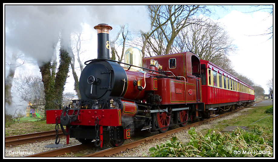 With single line tokens exchanged, 'Fenella' heads out to Ballabeg and Port Erin