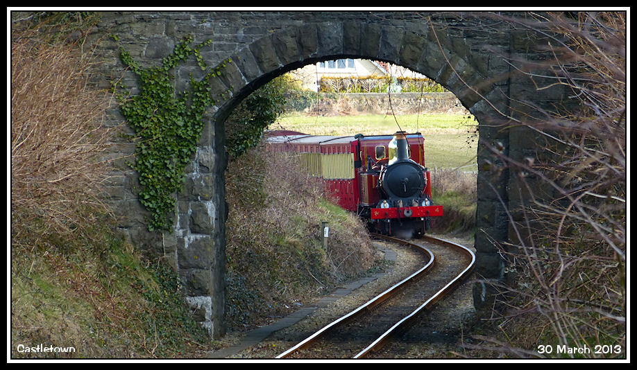 Next train to arrive is the 09:50 from Douglas, Headed by No 4 'Loch'