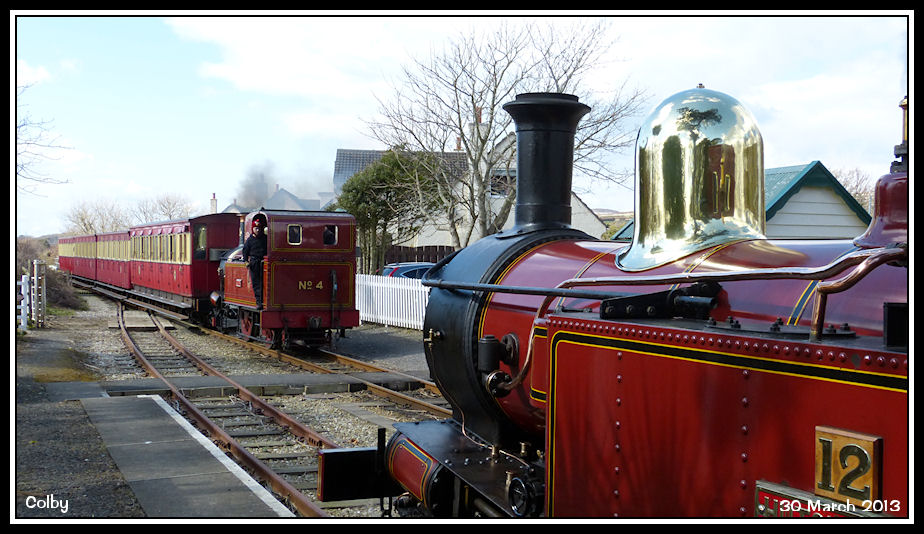 The 11:35 Port Erin to Douglas arrives, hauled by No 4 'Loch'