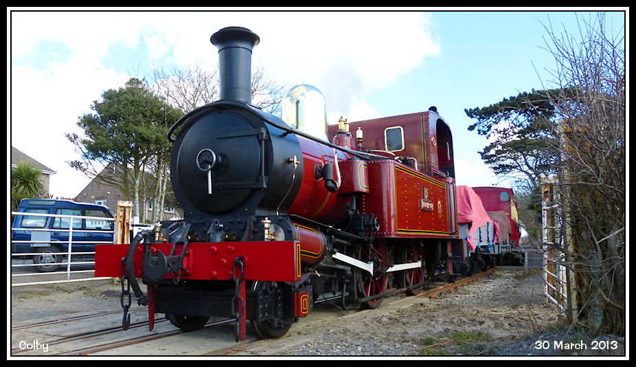 With the Colby - Port Erin single line token on board, 'Hutchinson' heads out with the IMR mixed train