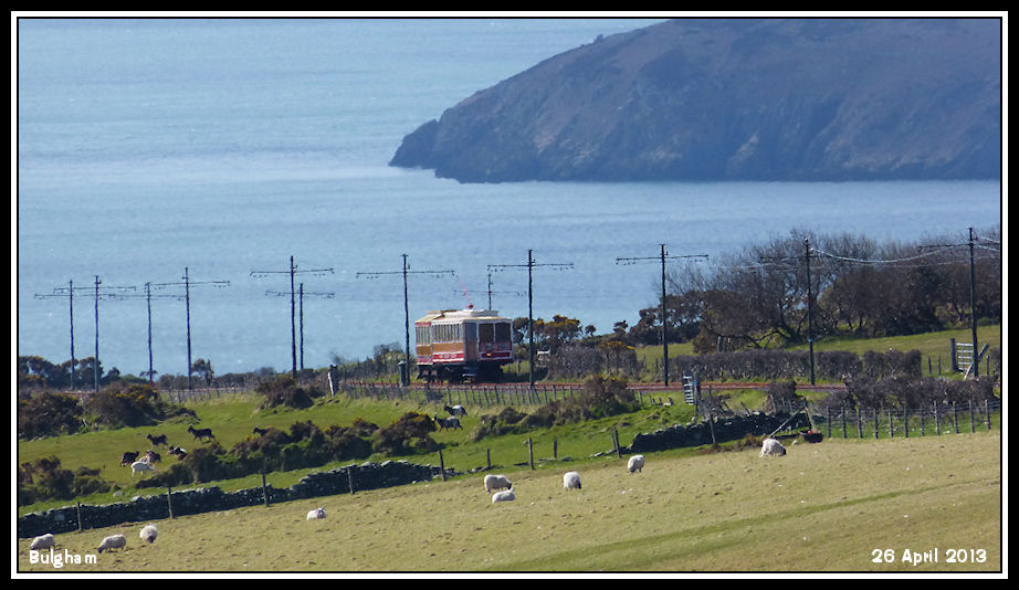 With the sea as backdrop, Car No 19 on the long and steep climb out of Laxey