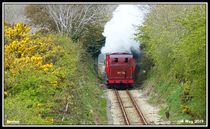 'Hutchinson' bursts from under a farm overbridge near Santon
