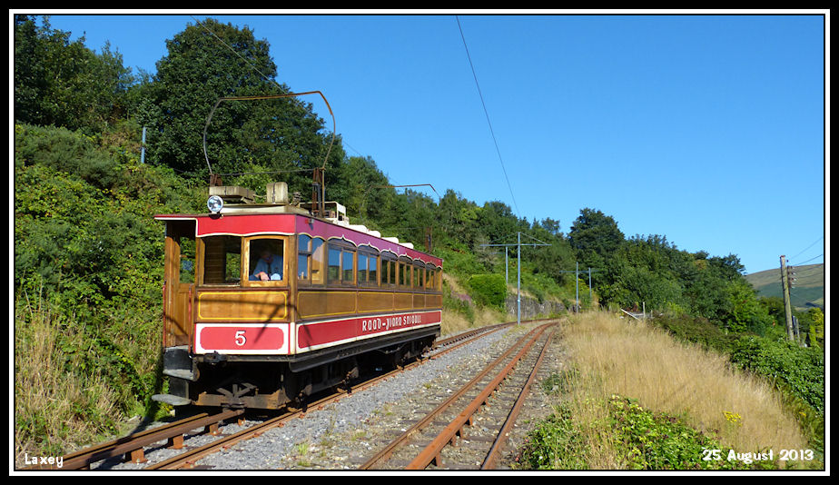 Snaefell Mountain Railway Car No 5 waits just below the depot before heading down into Laxey station