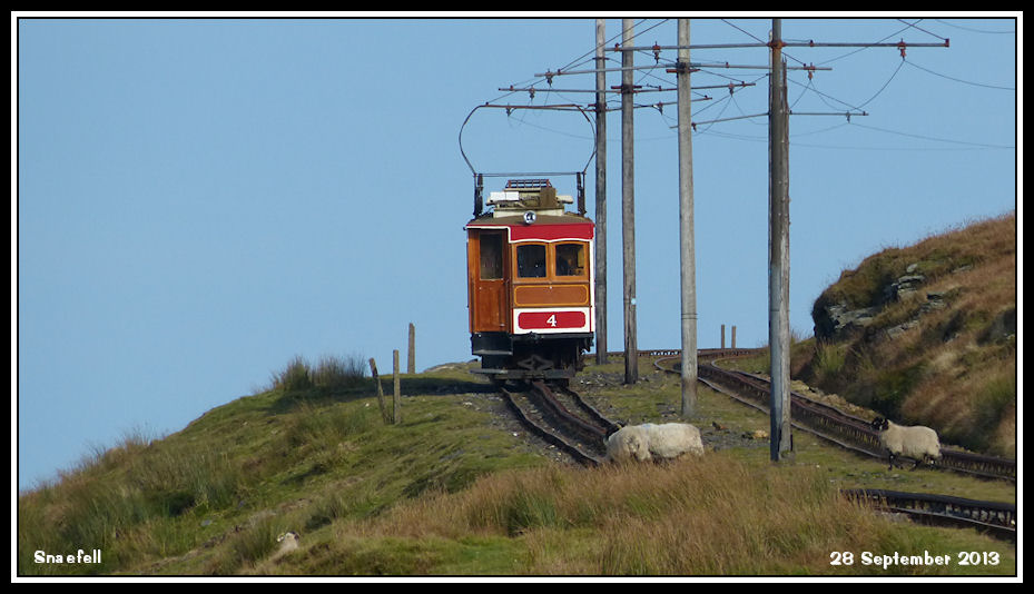 First car of the day up is for staff, No 4 pictured on the descent with sheep crossing ahead